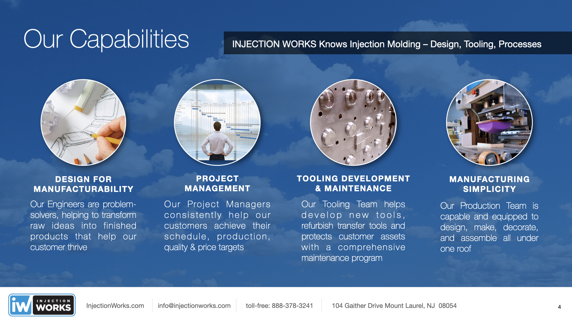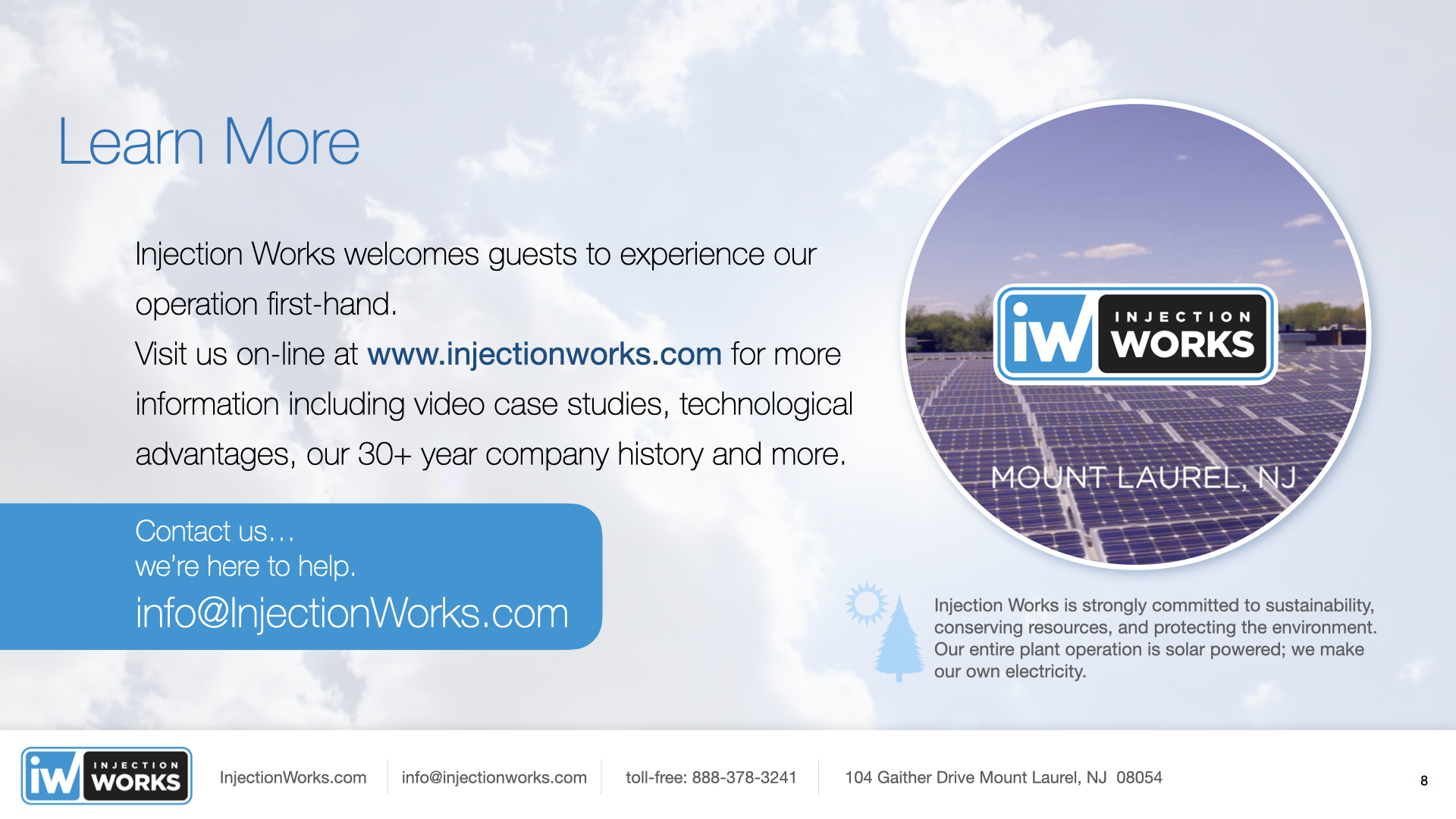We know that you have many choices for a plastic injection molding partner, and we appreciate that you took the time to come here to learn more about Injection Works – our capabilities, services, and all that sets up apart from other injection molding companies. We welcome the opportunity to meet with you, and discuss your project. Please do not hesitate to use our contact form below to start a conversation with us. Thank you!