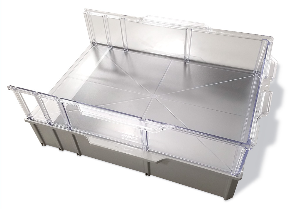 By reverse-engineering our client’s patented large tray and divider products, Injection Works was able to reproduce all critical features of their product including critical dimensions, wall thicknesses, locking features, and texture to their satisfaction, producing two completely new Class 101 injection molds capable of matching the exceptional market demand for their products.